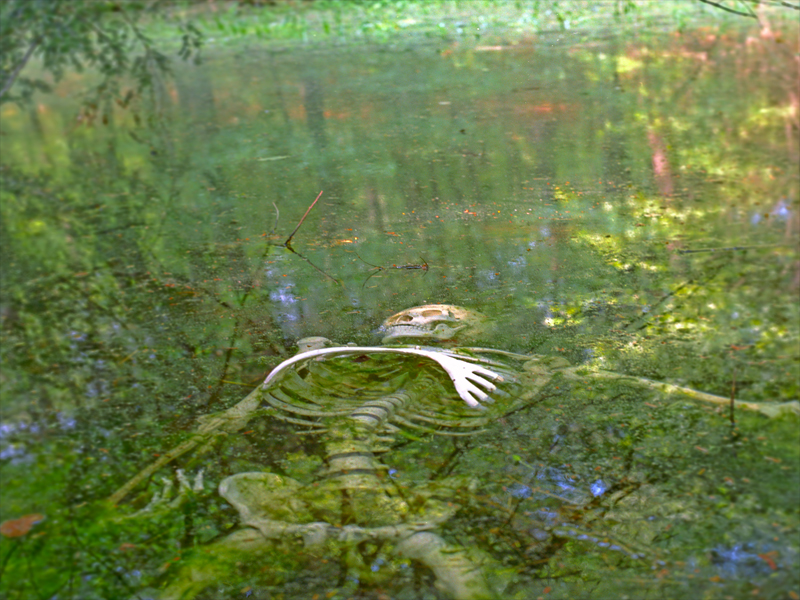 At first Max told me to began photographing, Slim, a skeleton I bought from China on Ebay. I threw Slim in swamps and photographed him with a Hasselblad 500c camera. Max said that was okay, but there was much more to do.