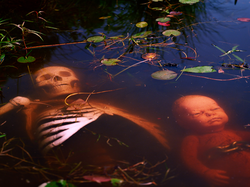 At first Max told me to began photographing, Slim, a skeleton I bought from China on Ebay. I threw Slim in swamps and photographed him with a Hasselblad 500c camera. Max said that was okay, but there was much more to do.