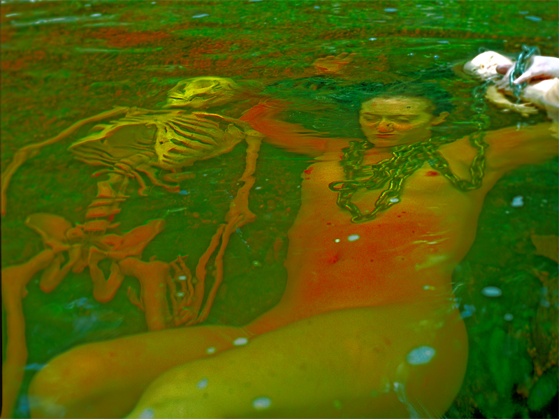 About six weeks ago Max wouldn’t let my dreams alone, and kept telling me I had to start to work with live models with the skeletons and dolls in swamps. Nude, I asked. He just walked away. Of course nude.